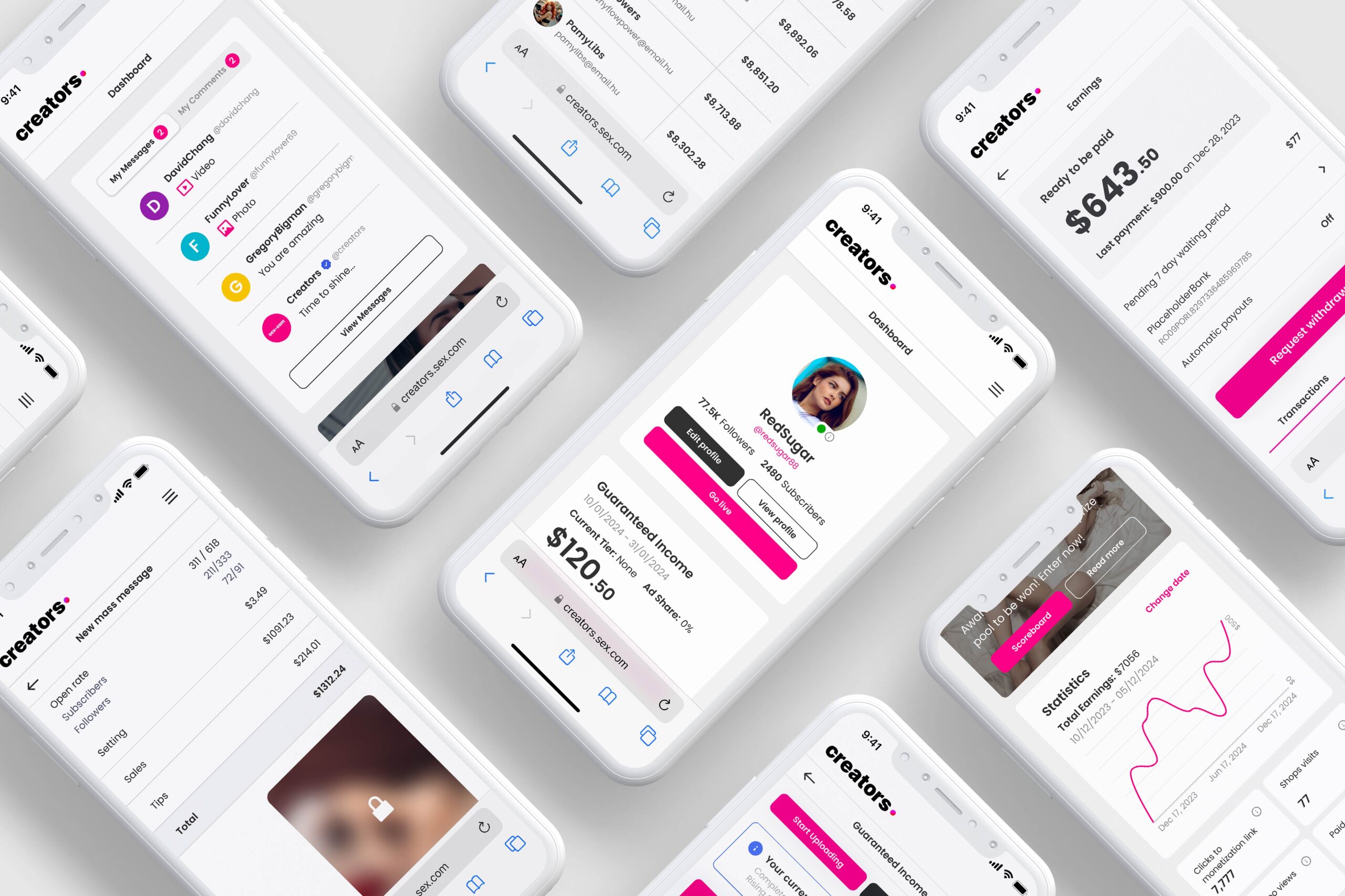 Solution: Designed an intuitive interface allowing creators to upload and manage content, track payouts, view statistics, and participate in contests. The UI was fully optimized for mobile use, as 80% of users access the platform via mobile devices.