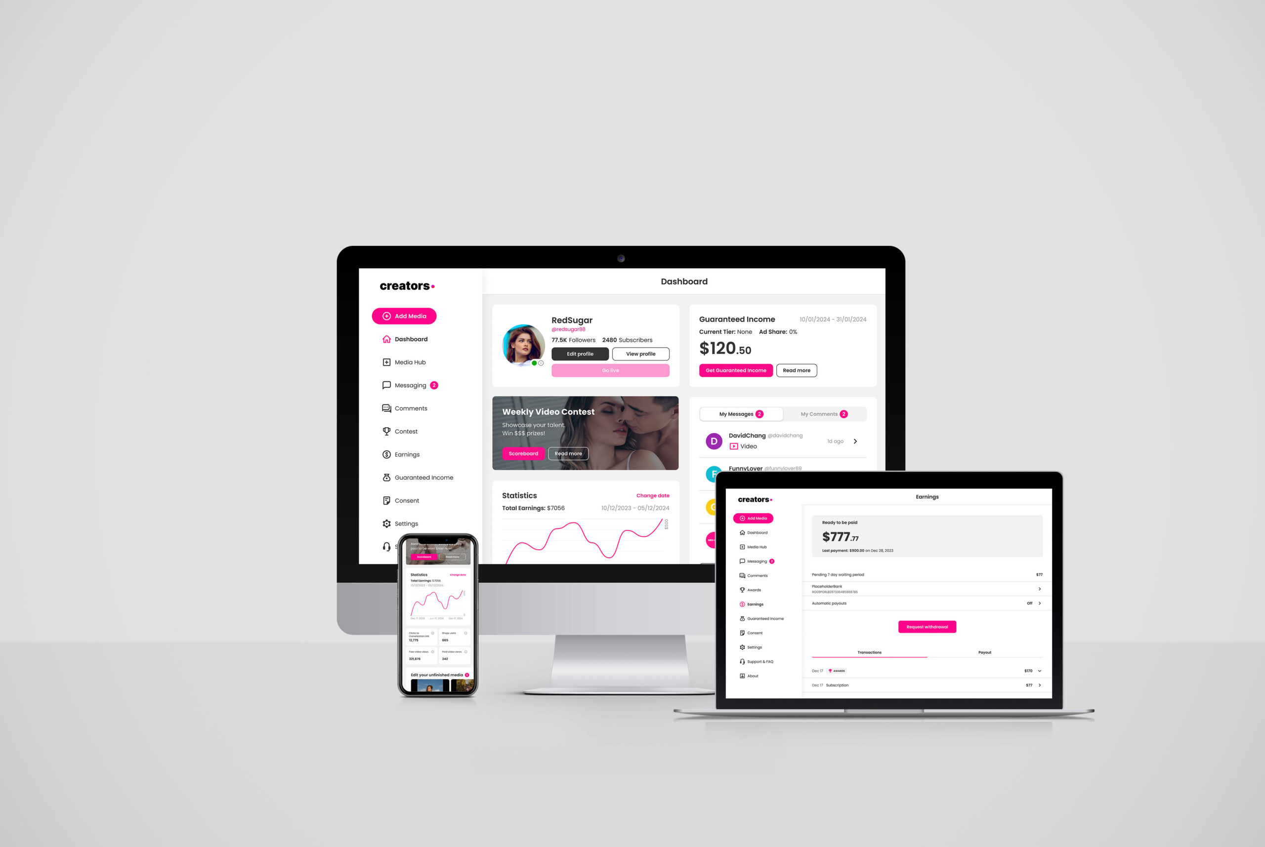 Objective: As Creators is one of the world’s most valuable adult web domain’s content management platform, the goal was to design a more user-friendly interface for content creators.