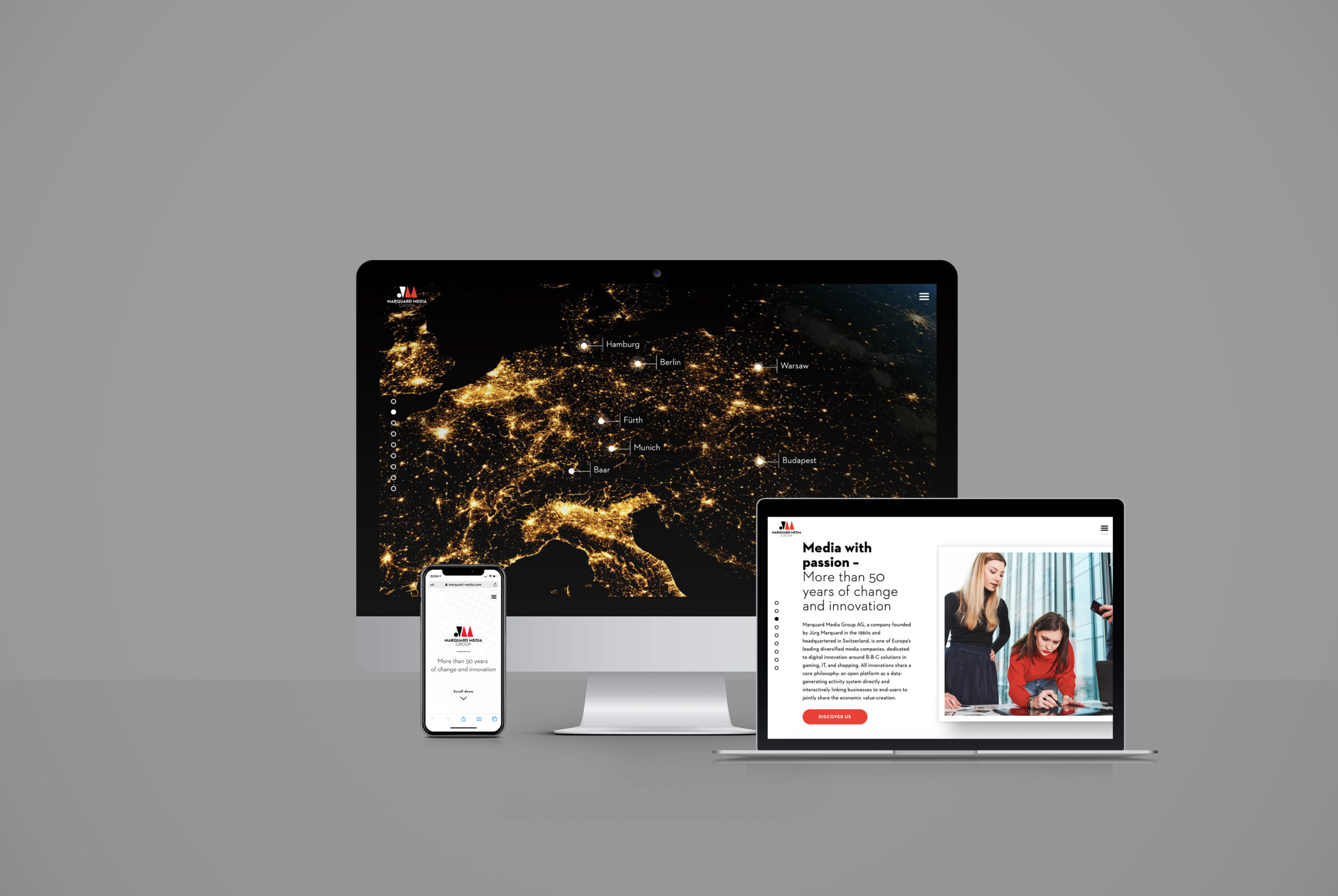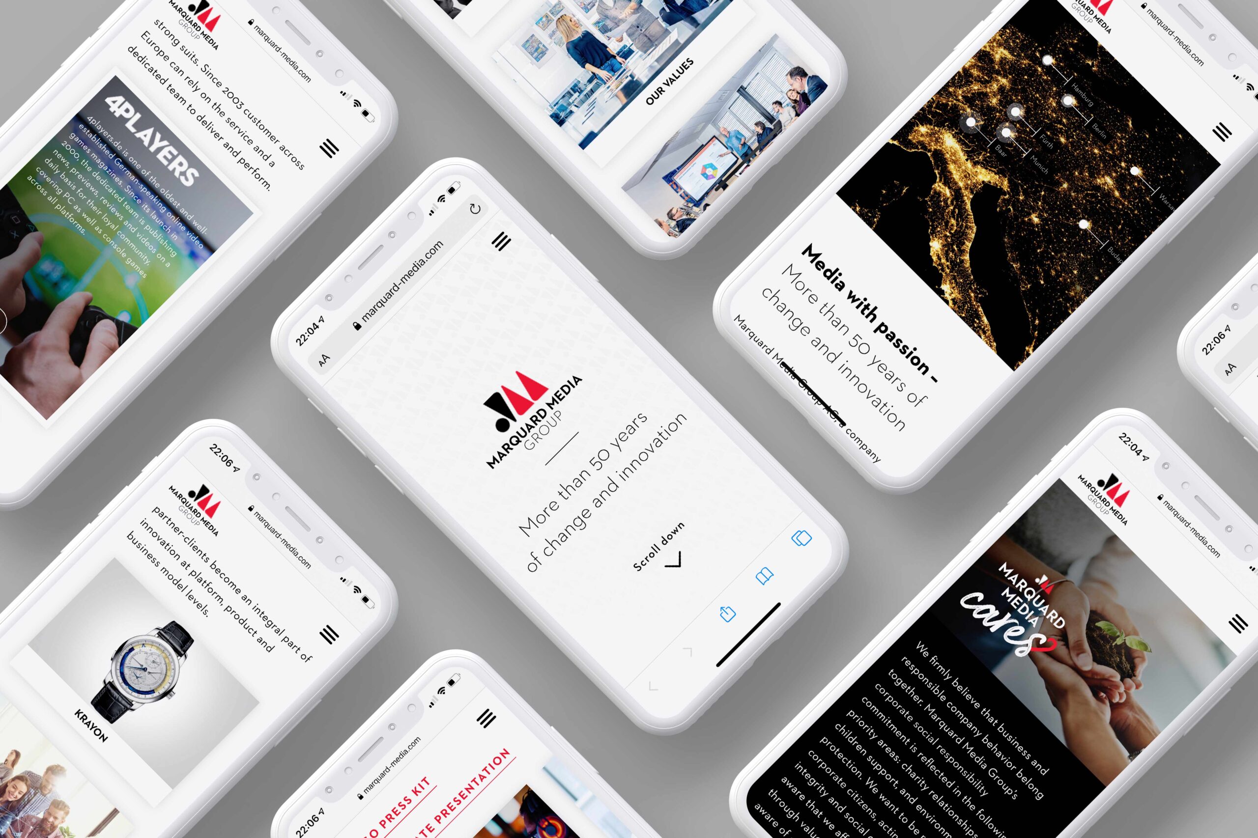 Objective: Redesign the corporate website and brand identity of Marquard Media’s parent company, which operates in four European countries.